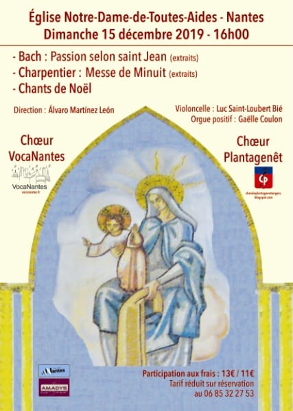 Cette année, le concert de Noël aura lieu le dimanche 15 décembre à 16h à l’église Notre-Dame-de-Toutes-Aides à Nantes.